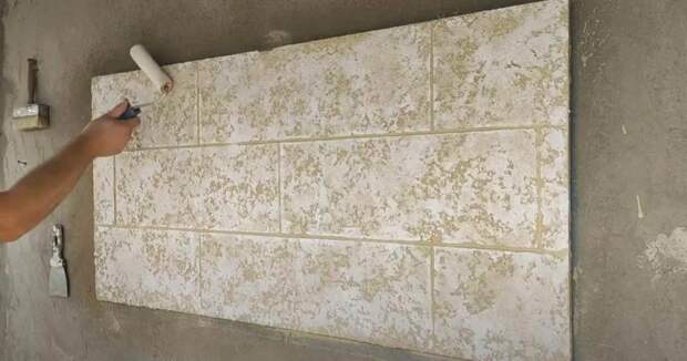 Только на этот раз автор использует белую фасадную краску, и наносит ее при помощи валика с коротким ворсом.